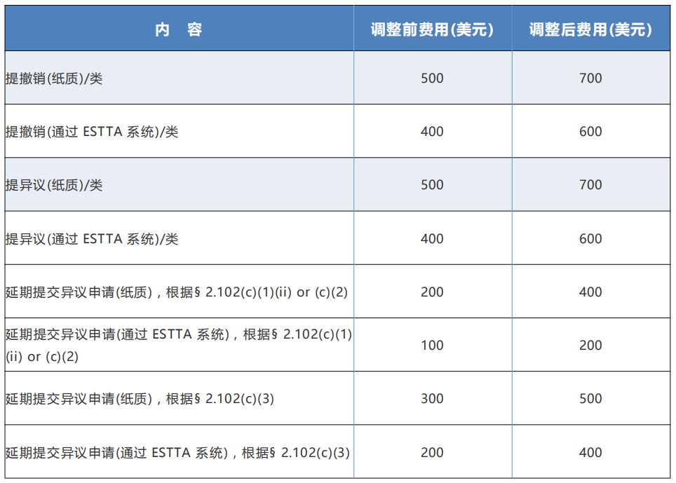-TTAB異議、上訴和審理程序(商標(biāo)審理和上訴委員會(huì)的異議、上訴和審理程序)現(xiàn)在,美國(guó)專(zhuān)利商標(biāo)局正式宣布漲價(jià),這是美國(guó)商標(biāo)局近三年來(lái)首次提高收費(fèi)標(biāo)準(zhǔn)。